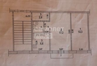 Квартира 2-х комнатная общей площадью 45 кв.м., две смежные комнаты 17,2 кв.м. и 14 кв.м. соответственно, в большой комнате есть балкон, кухня 5,8 кв.м., просторный коридор, совмещенный сан. узел. Дом после кап. ремонта, чистый подъезд, хорошие дружные соседи.