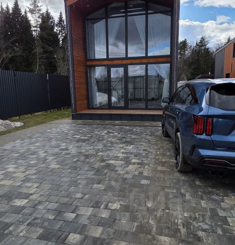 На участке выполнена дренажная система, он всегда сухой. Грамотный ландшафтный дизайн: посажены сосны и яблони, есть свой небольшой пруд с ручьем и мангальная зона. Огорожен забором из металлических прутьев, выглядит легко и строго. Есть навес на два машиноместа с автоматическими воротами DoorHan с отдельным заездом для каждого автомобиля.
