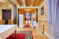 В доме есть все необходимое для комфортного проживания: санузел с душевой кабиной, кухонный гарнитур и набор посуды.