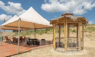 - Декоративный пруд с красивыми птицами и зоной отдыха.