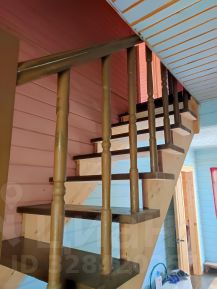 На первом этаже просторный зал и кухня. На втором этаже 2 комнаты. Лестница не крутая, удобная для спуска пожилым людям.