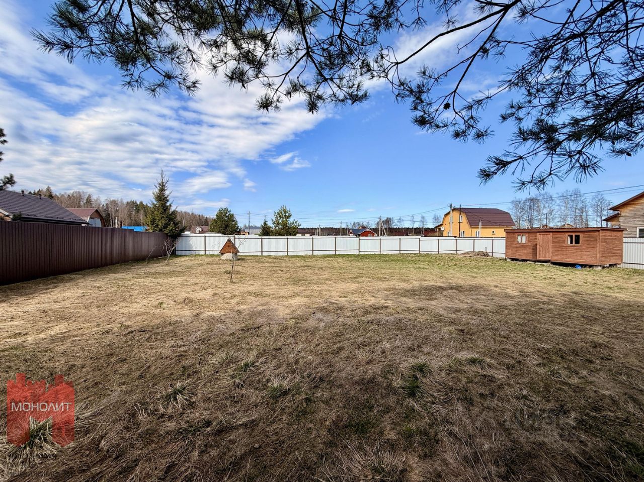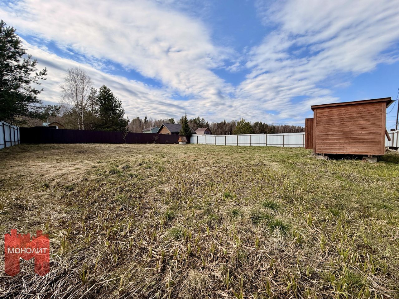 Полностью готов к строительству: выровнен, освобожден от деревьев и пней, сделан небольшой уклон, заведено электричество (15 кВт), имеется колодец с питьевой водой, бытовка.